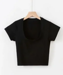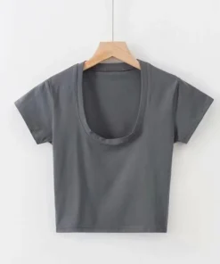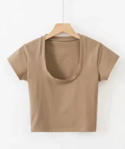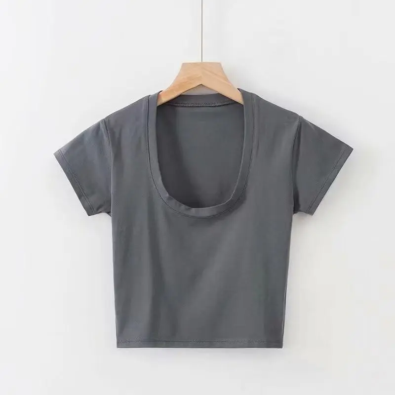 Summer Sexy T Shirt Tops for Women Clothes Stretch Slim Tees Shirt Femme U Neck Short Sleeve T-shirts Streetwea Crop Top