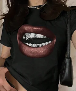 Summer Sporty T-Shirts Lip Printed Female Clothing Short Sleeve O-neck Tees Funny Women T Shirt Vintage Unisex Tops