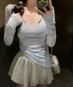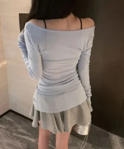 U-Neck Long Sleeve T-Shirt Women Autumn New Slim Casual Fashion Top Solid Bottom Shirts New Korean Basic Off Shoulder Top