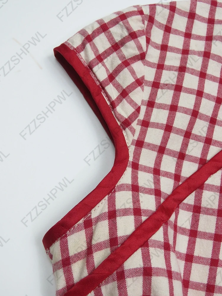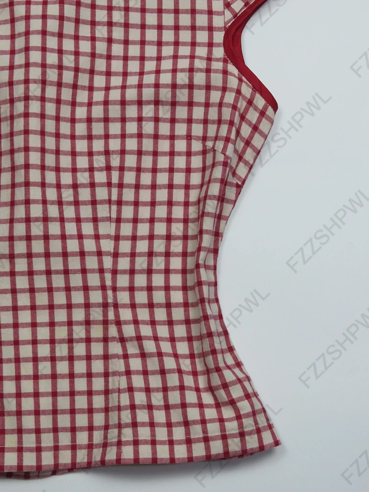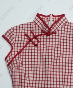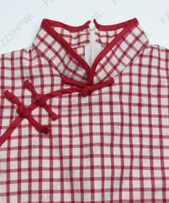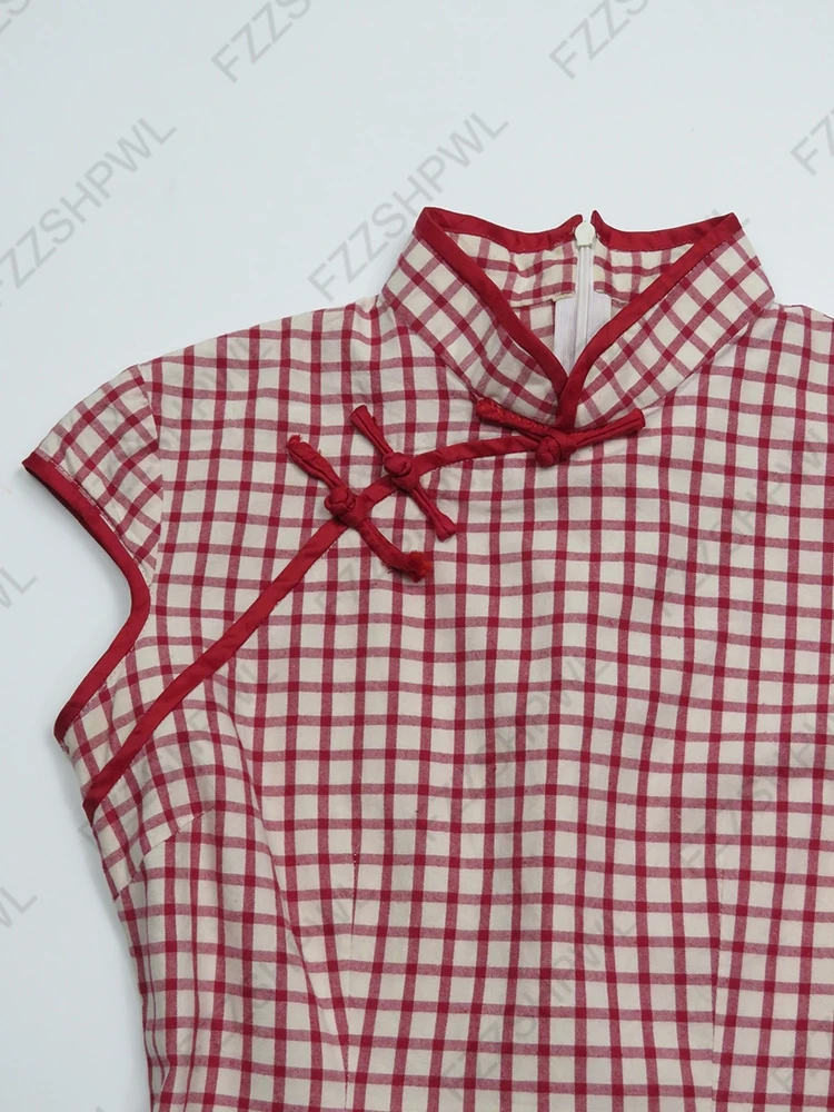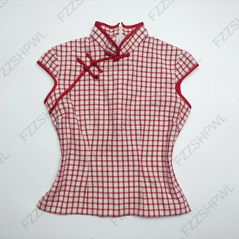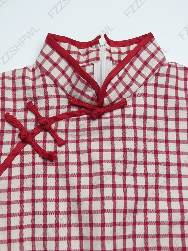 Vintage Aesthetic Women’s Plaid Cheongsam Top Sexy Slim Fit Chic Short Sleeve O-Neck Crop Tops 2000s Harajuku Hottie Streetwear