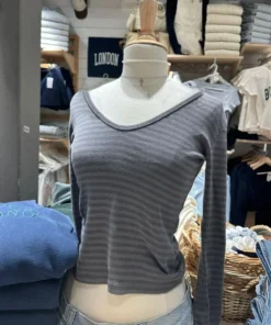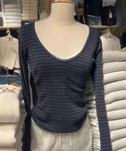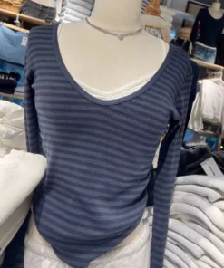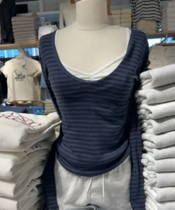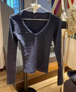 Vintage Striped Slim Long Sleeve T-shirt Woman Spring V-Neck Cotton Casual Tee Shirts Female Sweet Cute Preppy Style Y2k Tops