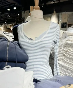 Vintage Striped Slim Long Sleeve T-shirt Woman Spring V-Neck Cotton Casual Tee Shirts Female Sweet Cute Preppy Style Y2k Tops