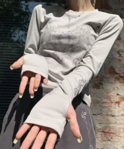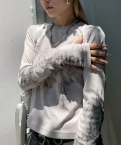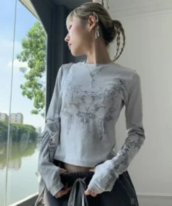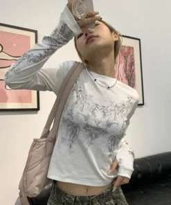 Vintage Women Clothes Y2K T-shirts 2023 Blusas O-neck Long Sleeve Print Tunic Woman Clothing Fashion Casual Crop Tops Shirts