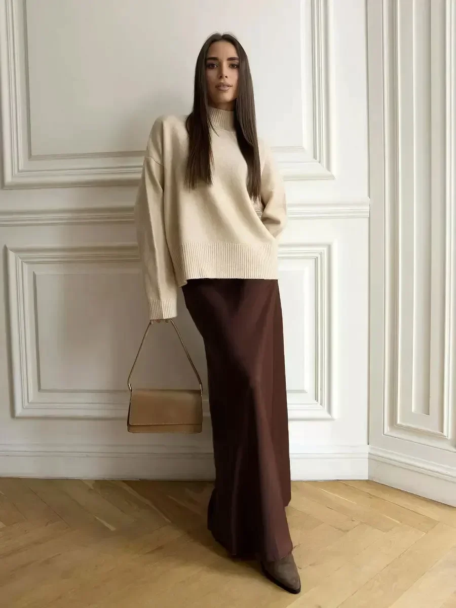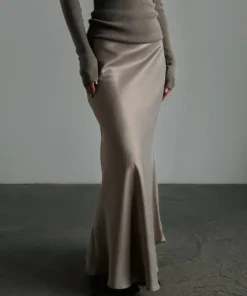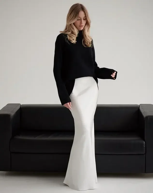 Wolfeel Casual Satin Women’S Skirt Spring Summer Fashion Loose High Waist Maxi Skirts Elegant Simple Slik Fishtail Skirt