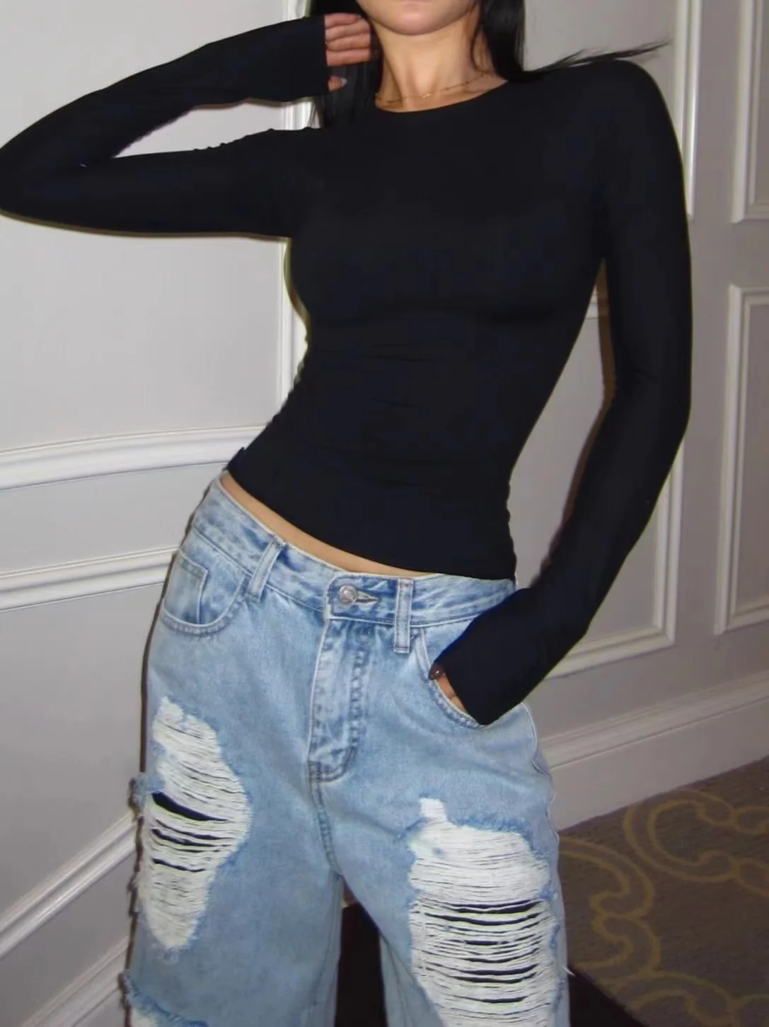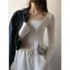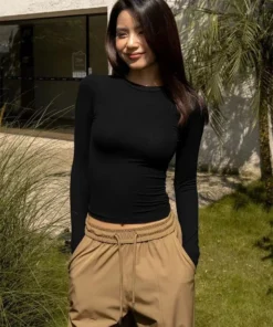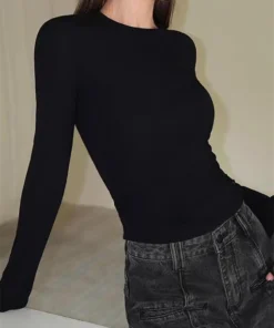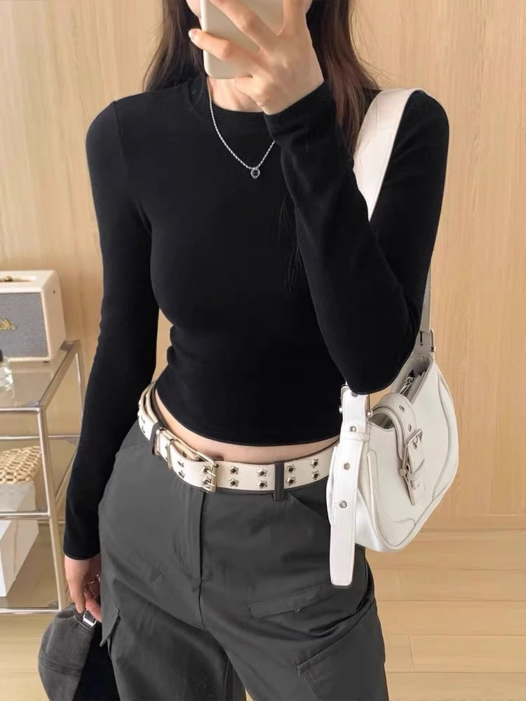 Women Casual Long Sleeve T-shirts Elastic Basic Autumn Solid Slim Pullovers Tee Shirt Female Streetwear Base Lady Top