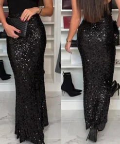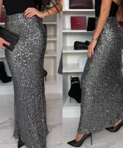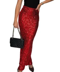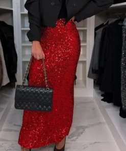 Women Sexy Red Sequined Skirts Fashion Zip Up High Waist Slim Women Skirts Club Party Nigh Dress 2024 New Christmas Clothing