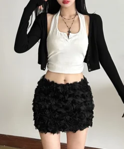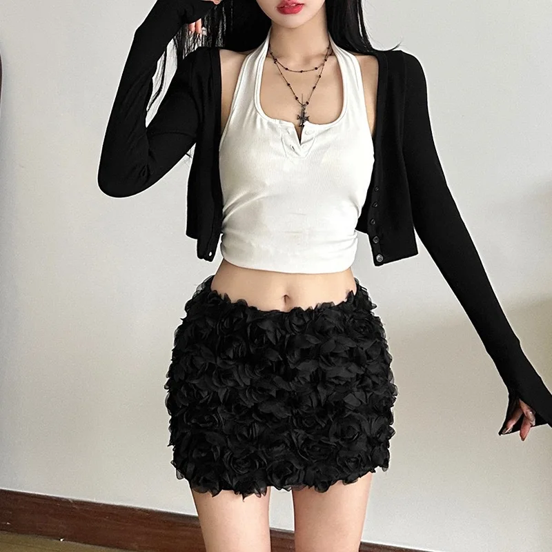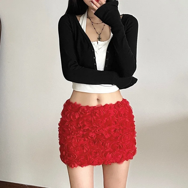 Women Summer New Fashion 3D Flower High Waist Mini Skirt Sexy Party Club Skinny Short Skirts High Street Solid Female Tottoms