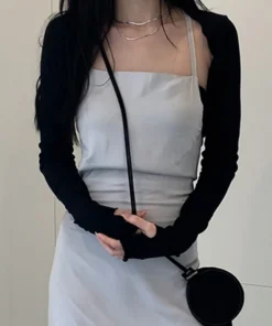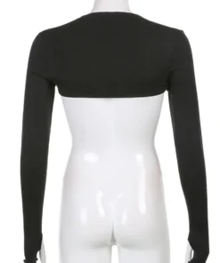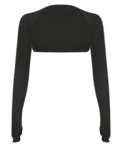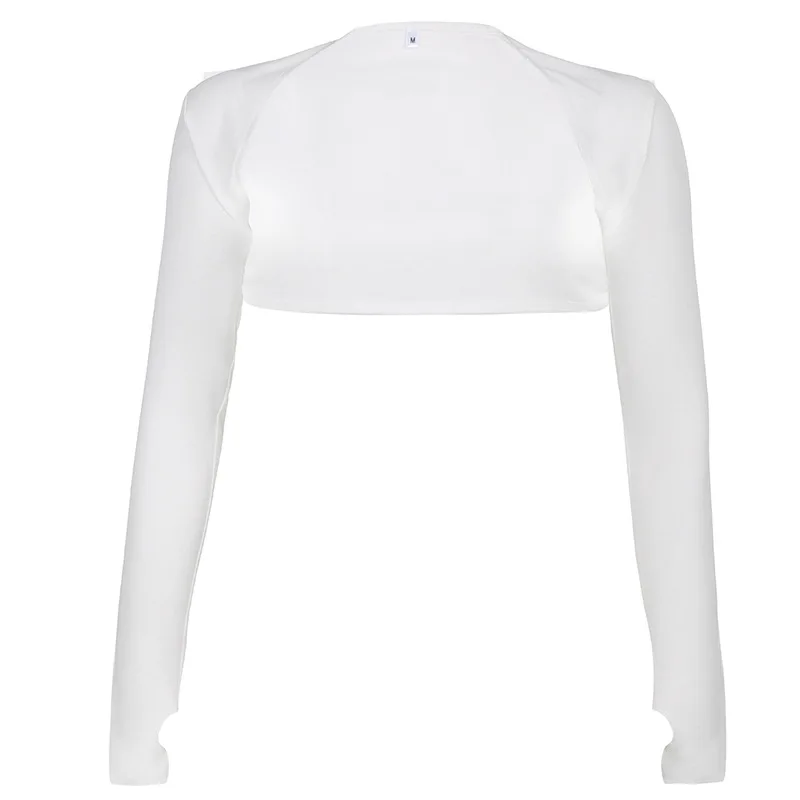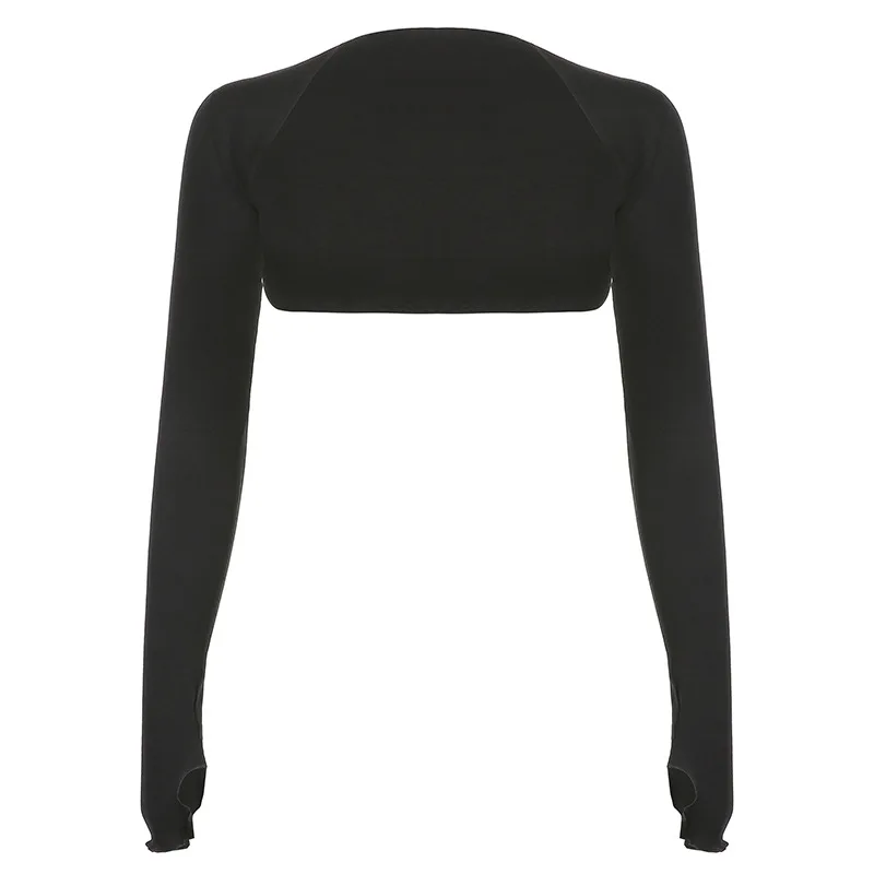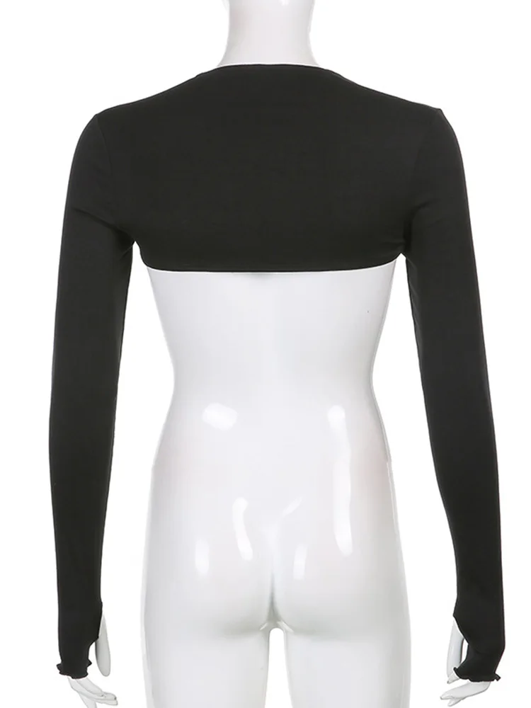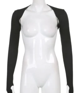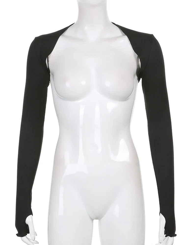 Women Thumbhole Long Sleeve Bolero Shrug Solid Color Open Front Cropped Cardigan Top Bodycon Slim Fit Sunscreen Arm Cover Jacket