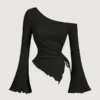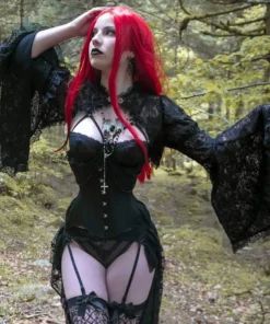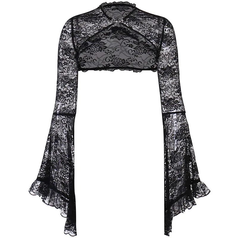 Material: LacenFit Type: SkinnynSleeve Style: Flare SleevenCollar: O-necknClothing Length: Super-shortnSeason: All seasonnnn|Gothic Crop Top For Ladies|Gothic Crop Top Ladies|nn**Elegant Gothic Design**nStep into the world of dark romance with our Women's Hollow out Crop Top, a chic addition to any gothic fashion enthusiast's wardrobe. This top is crafted from delicate lace, offering a skinny fit that accentuates your silhouette. The flare sleeves add a dramatic touch, while the O-neck collar provides a classic finish. The super-short clothing length ensures a bold statement, perfect for those who dare to be different.nn**Versatile Fashion Statement**nDesigned for the fashion-forward, this gothic crop top can be dressed up or down to suit various occasions. Whether you're attending a party, dating, or simply enjoying a casual day out, this top's versatility makes it a staple piece in your wardrobe. The all-season fabric ensures that you can wear it throughout the year, making it a practical choice for your style needs.nn**Tailored for Comfort and Style**nWe understand that comfort is key when it comes to fashion, which is why this gothic crop top is crafted with slight stretch for a flattering fit. The knit craft of weaving ensures durability, while the polyester fabric provides a smooth texture. The gothic crop top's solid pattern and solid color make it a timeless piece that can be effortlessly paired with various bottoms to create a unique look every time. Remember to check the size chart for the perfect fit, and enjoy the blend of comfort and style that this top offers.
