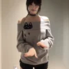 Women’s Square Collar Slim Sexy Navel Exposed Long Sleeved T-shirt Tops