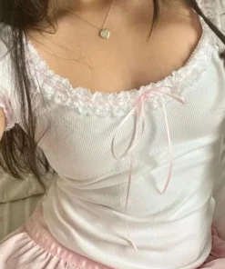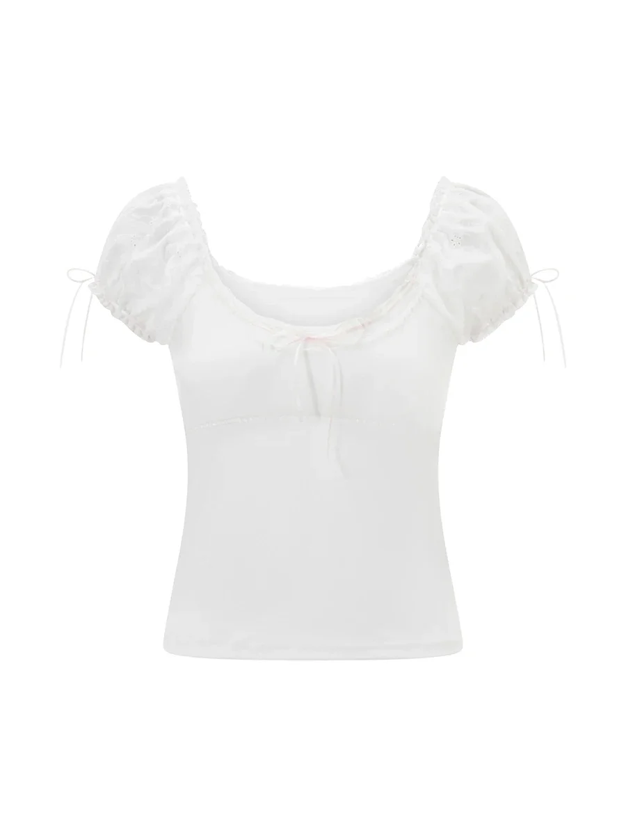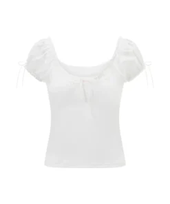 Women’s Summer T-shirt Cap Sleeve Square Neck Neck Lace Trim Tee Tops Kawaii Gothic Y2K Aesthetic Shirts