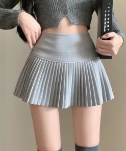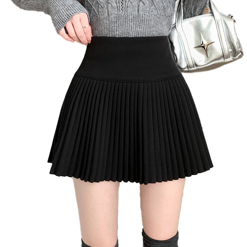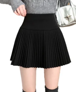 Wool Skirt Women High Waist Pleated Mini Skirt with Bulit-in Shorts Tennis Skirt Teen-girl Fall Winter Vintage Academia Outfit