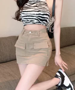 Xpqbb Summer Denim Short Skirt for Women Sexy Slim High Wiast Wrap Hip Mini Skirts Woman Korean Chic Pockets Shorts Jeans Skirt