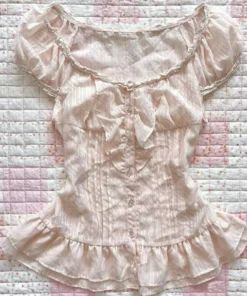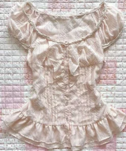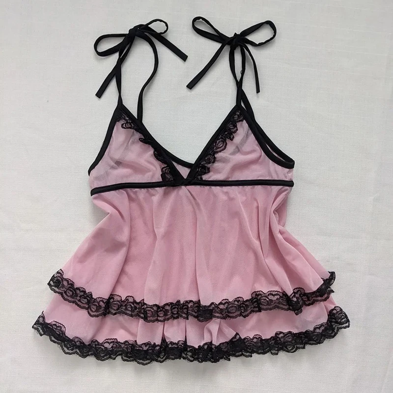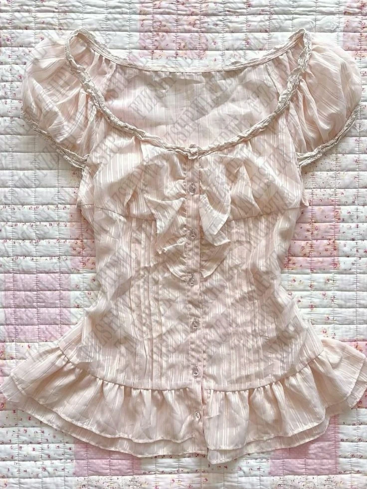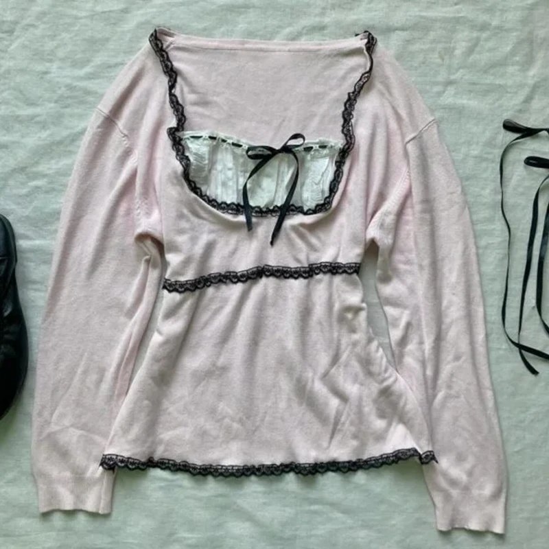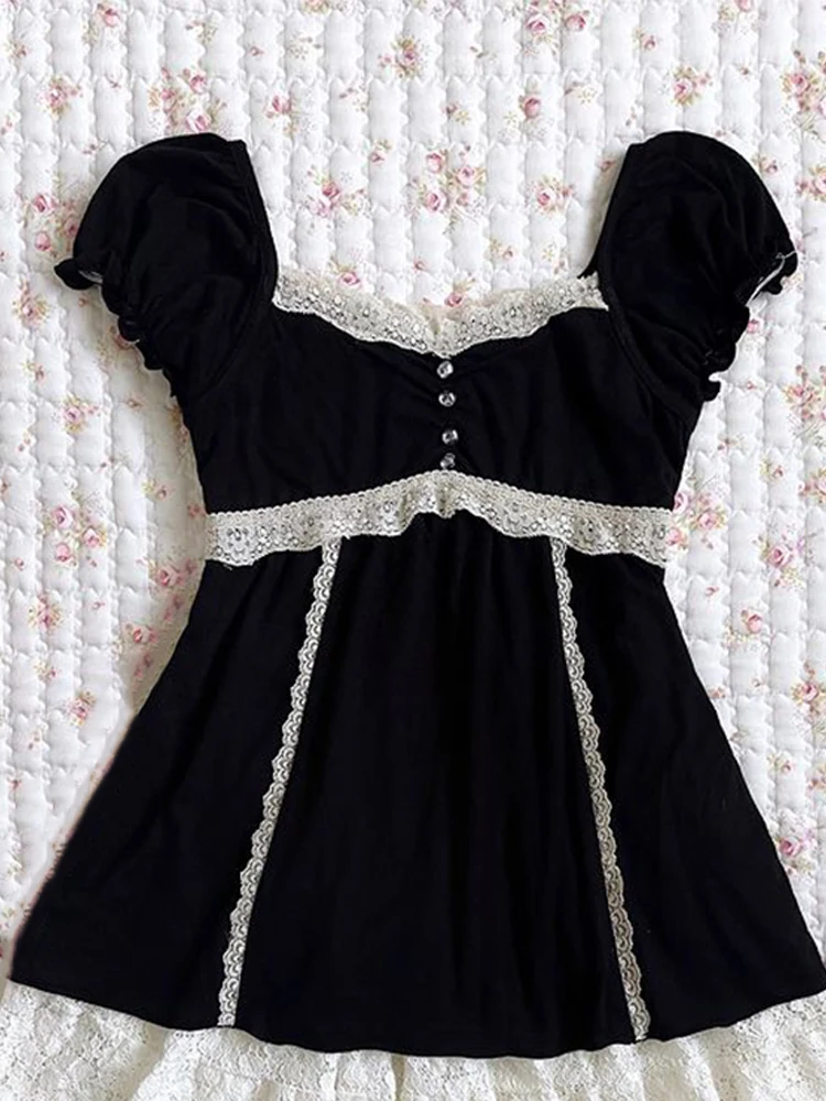 Y2K Pink Coquette Cute Maiden Sweet Women Clothing Hot Lace Baby Tee Harajuku Slim Tops Classic Short Sleeve Vintage Chic Shirts
