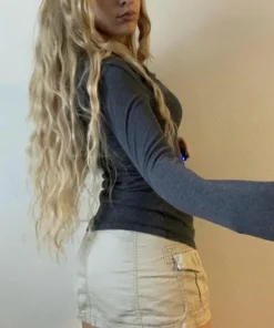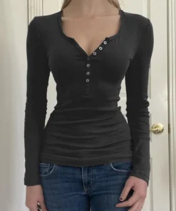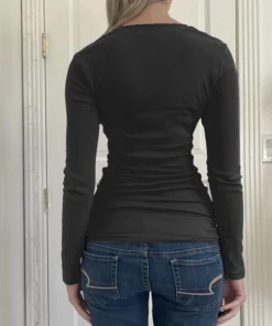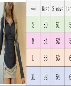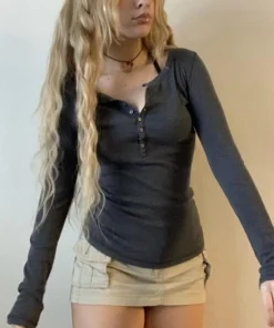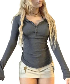 Y2K Women Basic Crop Top Fairy Grunge Long Sleeve Button Slim Fit Brown Tee Harajuku Aesthetic T-shirt 2000s Vintage Streetwear